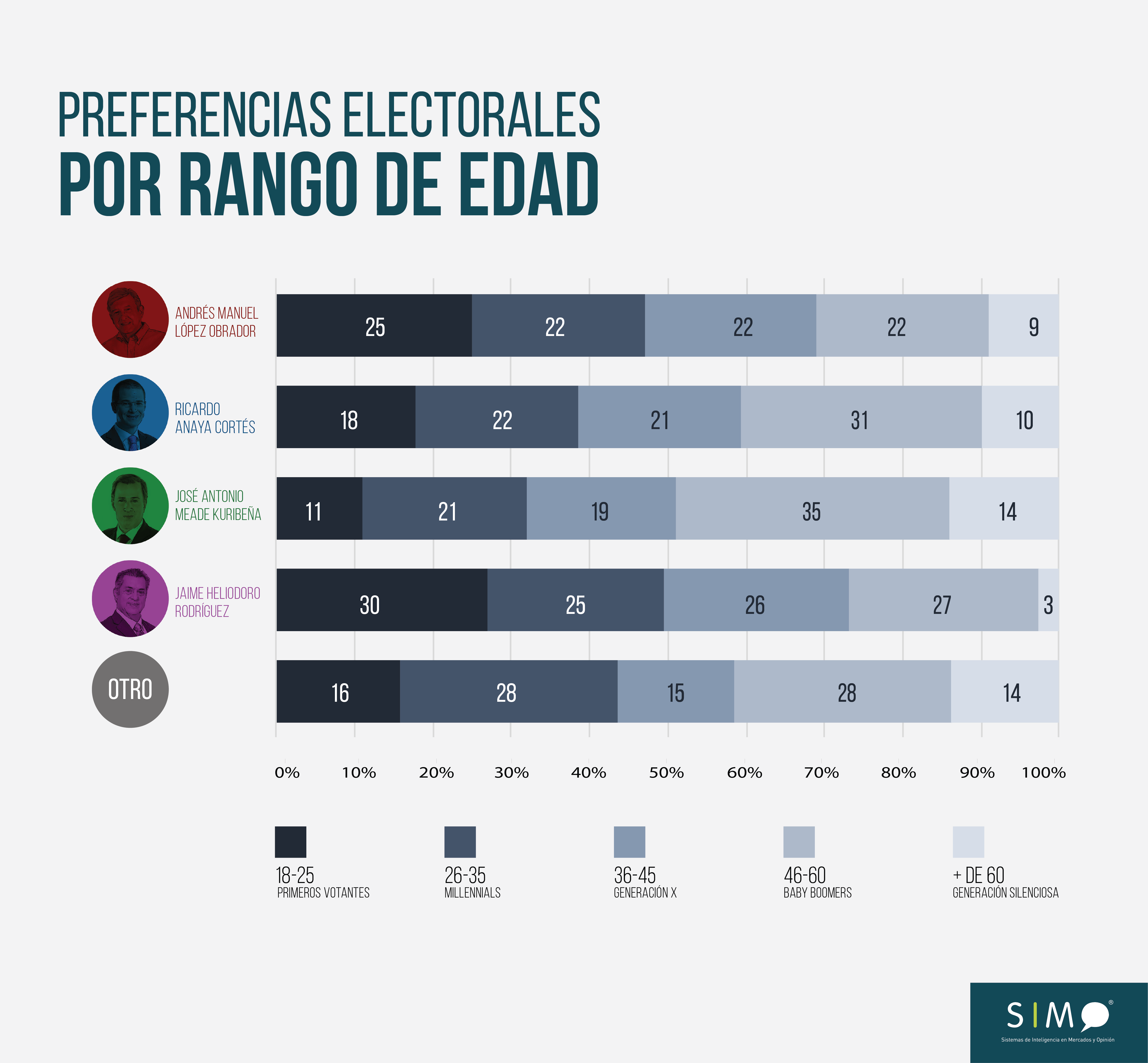 Al interior de este grupo están aquellos que votan por primera vez por un presidente de la república, el 17% de la lista nominal. Entre votantes de entre 18 y 25 años se consolida el apoyo más decidido a Andrés Manuel. Ellos han sido marcados principalmente por los crecientes niveles de inseguridad y violencia, pero quizá, de manera más fresca, por los niveles más bajos de aprobación a un presidente saliente: probablemente por eso aunque Anaya cuenta con casi un quinto de sufragantes menores de 25, Meade a penas alcanza el 10%. En cualquier caso, los perfiles de edad de los electorados de ambos candidatos, los más tradicionales, denotan un envejecimiento del que no sufren ni AMLO ni el más extravagante ‘Bronco’. El ganador, eso sí, mantiene una notable transversalidad hasta los 60 años. Lo cual resuena con su ubicación estratégica en los nuevos temas clave para los mexicanos: corrupción, inseguridad, pobreza.