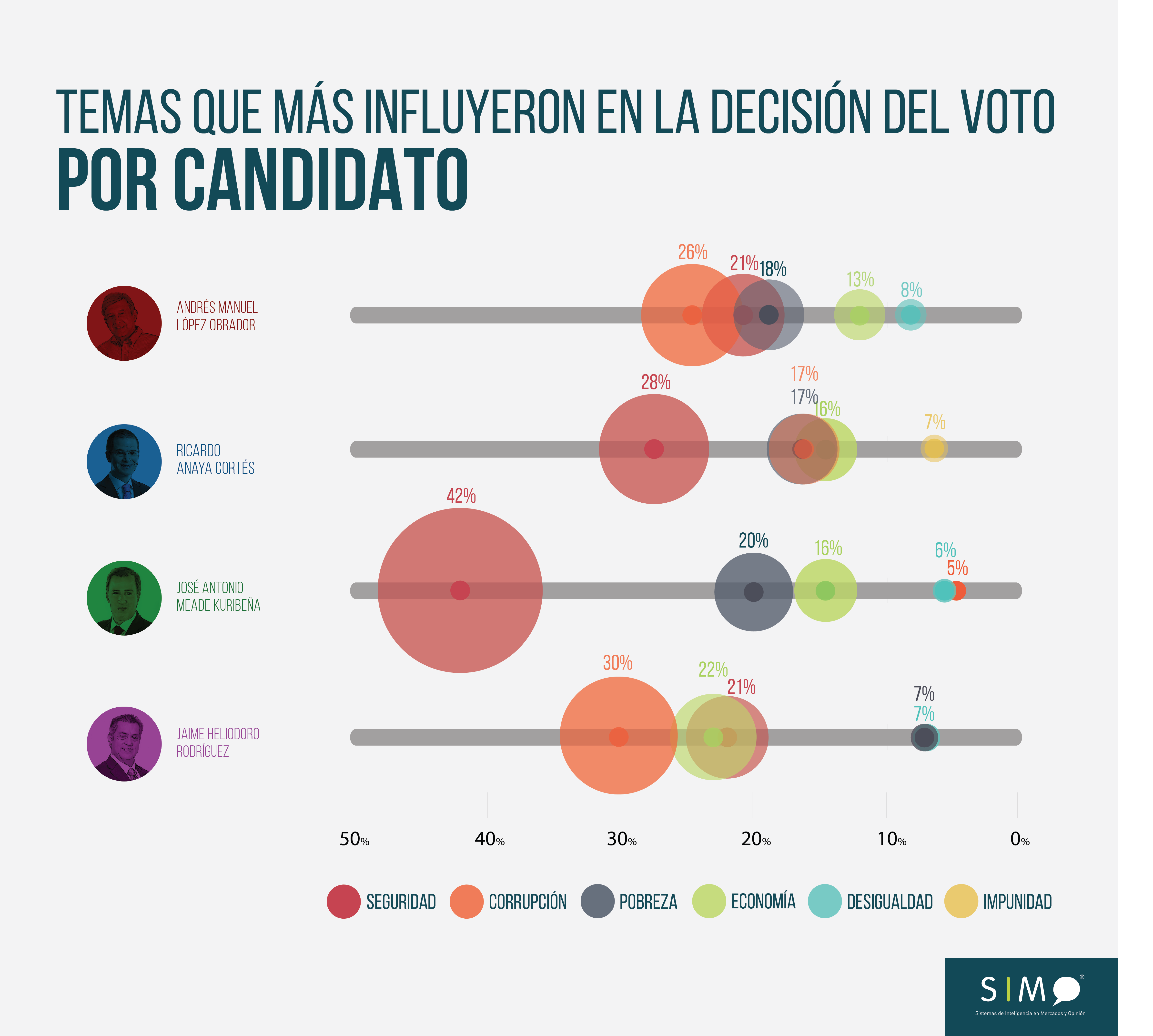 La corrupción es el principal motor temático del voto a AMLO. La seguridad sigue muy presente, como no podía ser de otra manera después de que México haya cerrado su año más sangriento en plena pre-campaña. Pero la pobreza le sigue de muy cerca, cuando no alcanzaba a ser el principal asunto ni para un 5% de los votantes hace seis años. Es cierto que los seguidores de Anaya y Meade estaban comparativamente más preocupados por la seguridad, y sin duda alguna para los de este último la corrupción no era una cuestión central. En cualquier caso, esta estructura de preocupaciones marca la agenda de futuro del Presidente electo.